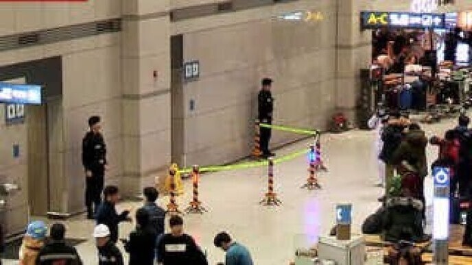 인천공항 제1터미널에서 폭발물 의심물체 발견 후 경찰이 현장을 통제하는 모습